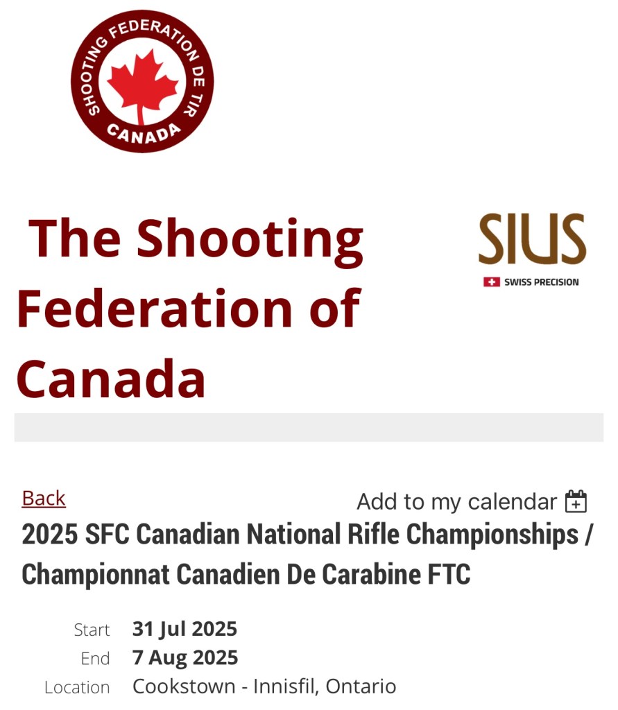 All athletes who are members in good standing with local, provincial and national shooting organizations are invited to this match. The match fee is $10.00 cash per relay payable on the day of the match. Space for this match is limited respond early. Please email the Match Director at bob.ossowski@gmail.com with your choice of relay and discipline that you will be shooting. You will be assigned a relay on a first come, first serve basis.